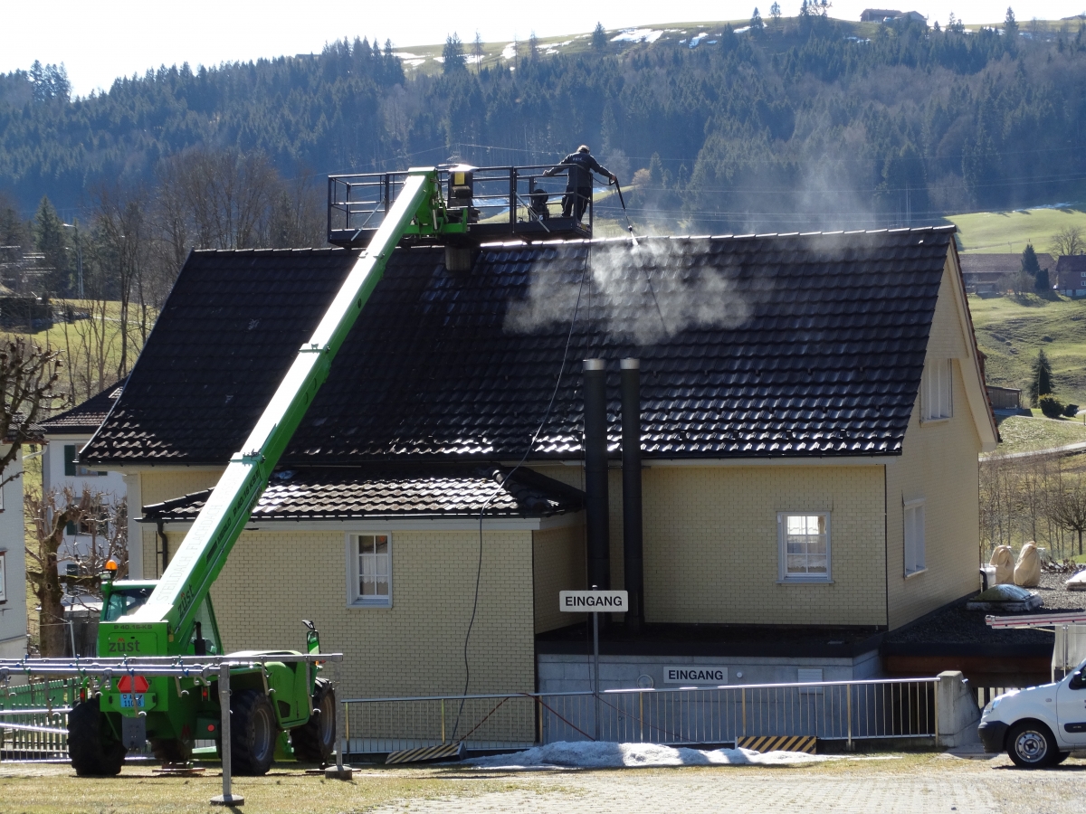 Dachservices werden häufig vernachlässigt. Bei jedem Auto ist klar, dass man regelmässig das Öl kontrolliert oder jährliche Services macht. Ebenso gehört bei jedem Gebäude eine gewisse Kontrolle dazu. Je nach Alter des Gebäudes ist ein jährlicher oder zweijährlicher Service zu empfehlen. Bei diesen regelmässigen Kontrollen lassen sich kleinere Schäden, wie defekte Ziegel, verstopfte Rinnen oder auch starke Vermoosungen erkennen und mit wenig Aufwand beheben. Wenn defekte Ziegel nicht in einer gewissen Frist ausgewechselt werden, können Unterdach, Dämmung oder auch tragende Teile wie das Gebälk grossen Schaden nehmen. Dies ist meist mit grossen Kosten verbunden. Ein jährlicher Service dauert bei einem Einfamilienhaus in der Regel nicht länger als 1 bis 1.5 Stunden.
